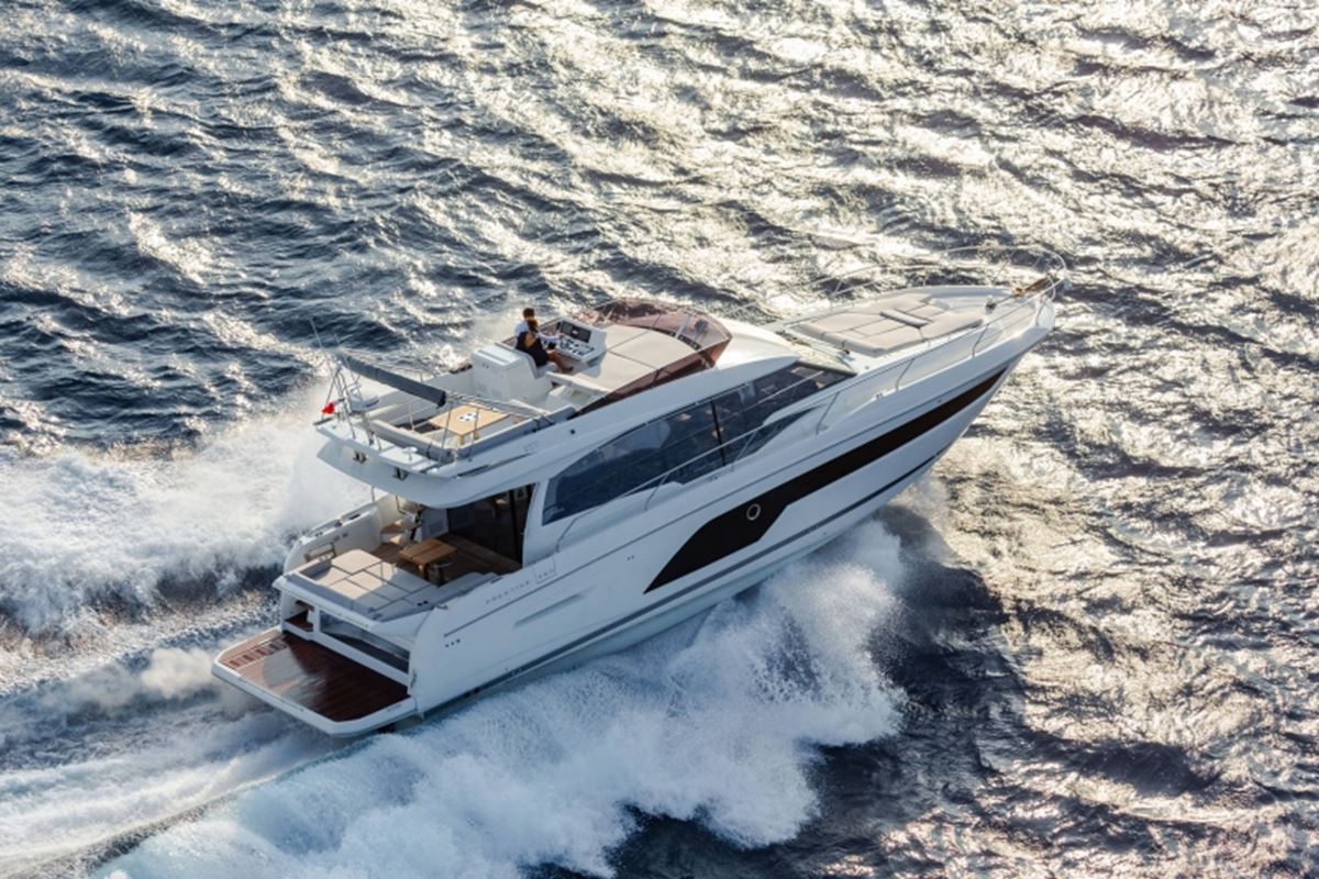 Do we have to say that Prestige 590 is one of the most gorgeous yachts around in its category? Well, check the photos of it and you’ll notice its elegant lines, rounded furniture, comfortable seating, and materials are shining out of most other yachts.